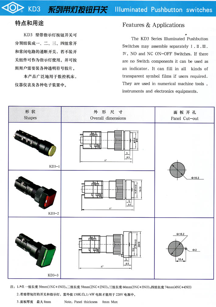 產(chǎn)品型號:KD3系列帶燈按鈕開